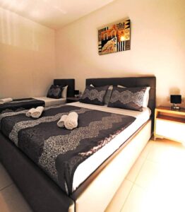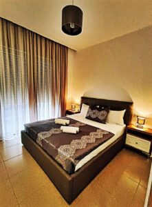 15АПАРТМАН 2083+2паркингАпартманот содржи,  1одвоена спална соба,со 1 брачен  кревет и 1единечен кревет.Комплетно опремена кујна,дневна соба со аголна гарнитура која може да се користи како дополнителен лежај за 2 деца или 1 возрасна особа, трпезариска маса  .Купатило, 2 клими, телевизор ,фрее  вифи, паркинг и тераса.
