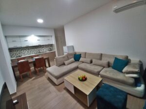 20АПАРТМАН 3022+2паркингАпартманот содржи 1 одвоена спална соба со 1 брачен кревет,Комплетно опремена кујна,дневна соба со 2 софи  која може да се користи како дополнителен лежај за 2 деца или 2 возрасни особи, трпезариска маса  .Купатило,  клима телевизор ,фрее  вифи, паркинг и тераса.