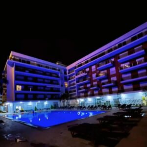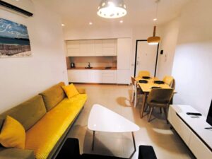 9АПАРТМАН 2013+2базенАпартманот содржи,  1одвоена спална соба,со 1 брачен  кревет и 1единечен кревет.Комплетно опремена кујна,дневна соба со аголна гарнитура која може да се користи како дополнителен лежај за 2 деца или 1 возрасна особа, трпезариска маса  .Купатило, 2 клими, телевизор ,фрее  вифи, паркинг и тераса.